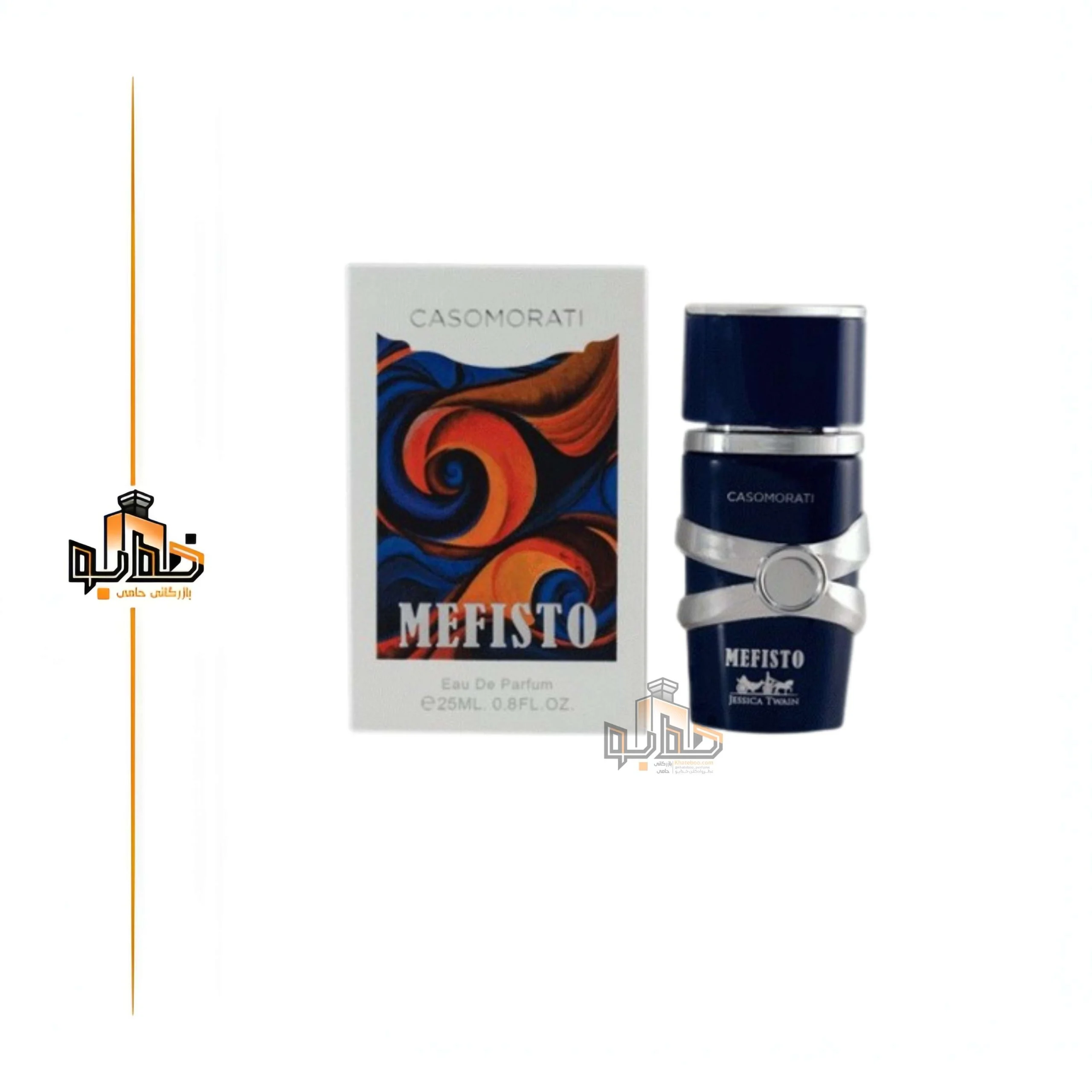 ادکلن 25 میل مردانه جسیکا توین مدل کازاموراتی مفیستو طرح شیشه اسد